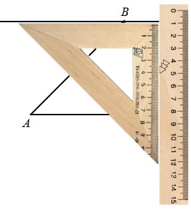 Чтобы провести прямую параллельную стороне АВ, проходящую через точку С, прикладываем чертежный треугольник к стороне АВ одной из его сторон образующих прямой угол, а вдоль другой стороны чертежного треугольника, образующей прямой угол, прикладываем линейку.