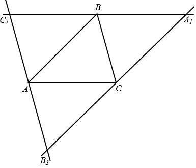 Нарисуйте треугольник АВС и проведите через его вершины А, В и С прямые, параллельные противоположным сторонам. Обозначьте вершины получившегося треугольника А1, В1 и С1 так, чтобы точки А и А1 лежали по разные стороны от прямой ВС, а точки В и В1 - от прямой АС. Сравните длины сторон АВ и А1В1, АС и А1С1, ВС и В1С1. Сделайте предположение.