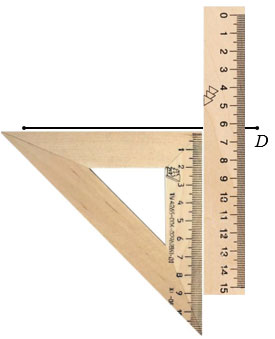 С помощью чертежного треугольника проверяем будет ли сторона АВ перпендикулярна АD. Для этого прикладываем чертежный треугольник к стороне АD одной из его сторон, образующих прямой угол, при этом вершину прямого угла чертежного треугольника прикладываем к точке А.