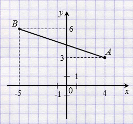Построим отрезок АВ по координатам его концов А(4; 3), В(-5; 6).
