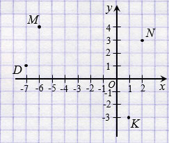 М(-6; 4), N(2; 3), K(1; -3), D(-7; 1)