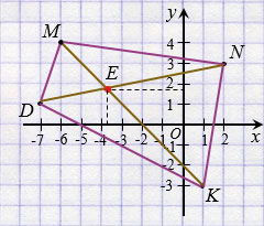 Е(-3,8; 1,8) - точка пересечения диагоналей МK и DN четырехугольника МNKD.