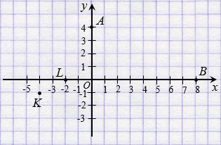 А(0; 4), В(8; 0), L(-2; 0), K(-4; -1)