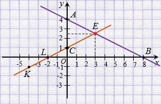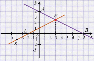Е(3; 2,5) - точка пересечения прямых АВ и LK.
