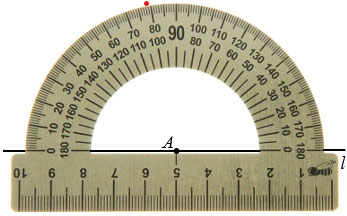 Далее прикладывает транспортир так, чтобы его центр совпал с точкой А, а прямая