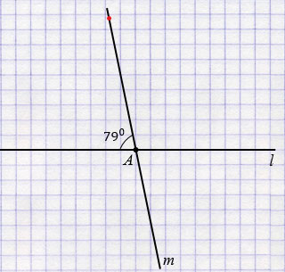 прошла через нулевое деление шкалы транспортира (будем работать с внешней шкалой транспортира) и отмечаем точку напротив деления 790 на внешней шкале транспортира: