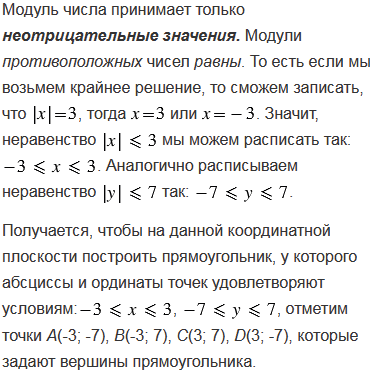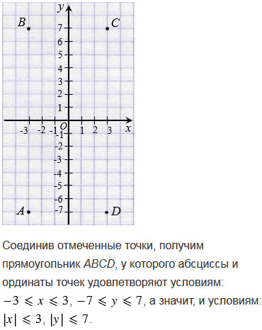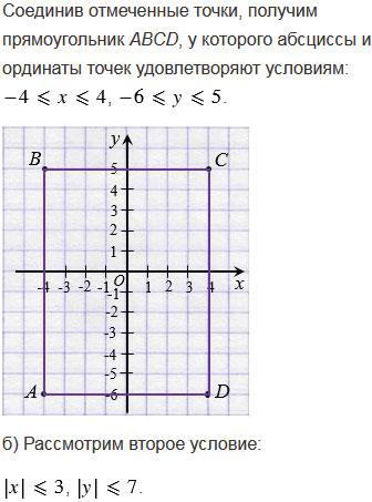 На координатной плоскости постройте прямоугольник, у которого абсциссы и ординаты точек удовлетворяют условиям: