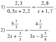 , используем основное свойство пропорции: произведение крайних членов пропорции равно произведению ее средних членов. Затем в каждом уравнении раскрываем скобки. Чтобы раскрыть скобки, нужно множитель, стоящий за скобками, умножить на каждое слагаемое, стоящее в скобках (учитываем то, что вычитание можно заменить сложением с противоположным числом). Далее при решении полученных уравнений учитываем то, что если перенести слагаемое из одной части уравнения в другую с противоположным знаком, то полученное уравнение имеет те же корни, что и данное. После в левой части уравнений приводим подобные слагаемые, а в правой - выполняем вычисления. Слагаемые, имеющие одинаковую буквенную часть, называют подобными слагаемыми. Чтобы сложить подобные слагаемые, надо сложить их коэффициенты (числа, стоящие перед буквенной частью) и полученный результат умножить на общую буквенную часть. И затем находим неизвестный множитель. Чтобы найти неизвестный множитель, нужно произведение разделить на известный множитель.
