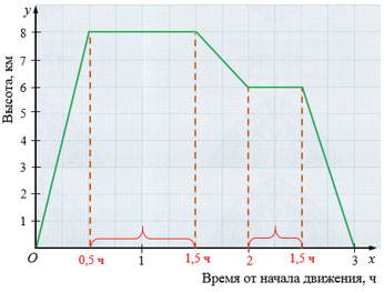 в) Горизонтальные участки графика, соответствуют промежуткам времени, во время которых самолет не менял высоту, значит, самолет не менял высоту: