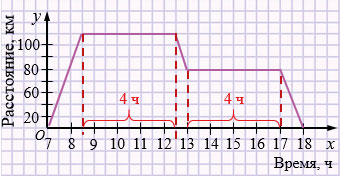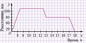 е) Стоянка автобуса - это горизонтальные участки графика. Значит, автобус находился на стоянке: