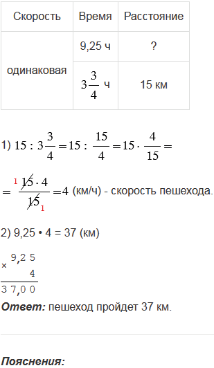 Какой путь пройдет пешеход за 9,25 ч, если за