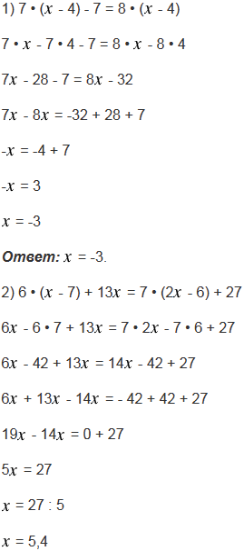 В каждом уравнении сначала раскрываем скобки. Чтобы раскрыть скобки, умножаем число, стоящее за скобками, на каждый компонент в скобках.