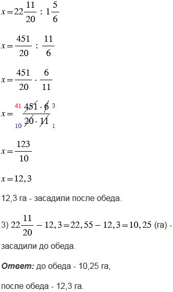 площади поля, засаженного после обеденного перерыва. Сколько гектаров картофеля засадили до перерыва и сколько после перерыва?