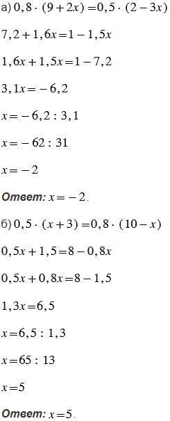 При решении уравнений из пунктов а) и б) сначала раскрываем скобки. Чтобы раскрыть скобки, умножаем число, стоящее за скобками, на каждый компонент в скобках.