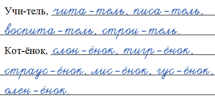 Образуйте слова с суффиксами -тель- и -ёнок-.