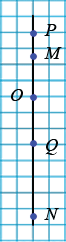Проведите вертикальную прямую и отметьте на ней точку O. Отметьте на этой прямой точки P, Q, M, N, если известно, что: