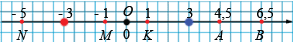 N(-5); M(-1); K(1); A(4,5); B(6,5).
