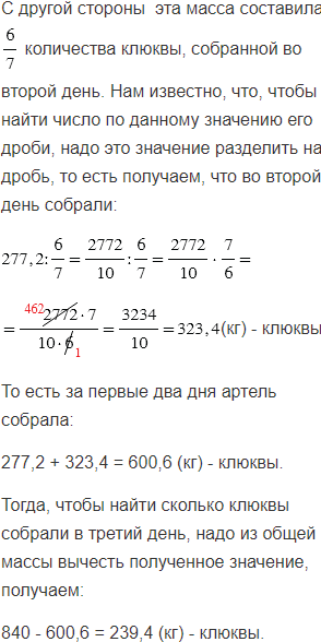 количества клюквы, собранной во второй день. Сколько килограммов клюквы артель собрала в третий день?