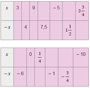 Заполните таблицу противоположных чисел. Отметьте эти числа на координатной прямой.