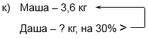 1) 3,6 : 100 • 30 = 0,036 • 30 = 1,08 (кг) - на столько Даша собрала больше,чем Маша.