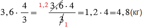 3,6 : 1,2 = 36 : 12 = 3 (кг)