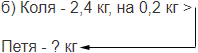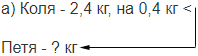а) на 0,4 кг меньше Пети;