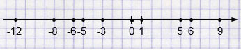 Отметьте на координатной прямой числа -8, 1, -5, -6, 9, 0, -3, -12, 5 и сравните: