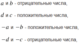 Сравните числа, если числа и - отрицательные, а числа и - положительные.