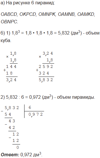 б) Найдите объем пирамиды, если ребро куба равно 1,8 дм.