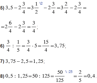3) результат, полученный в числителе, делим на результат, полученный в знаменателе (т.к. черта дроби обозначает действие деление).