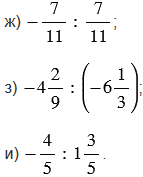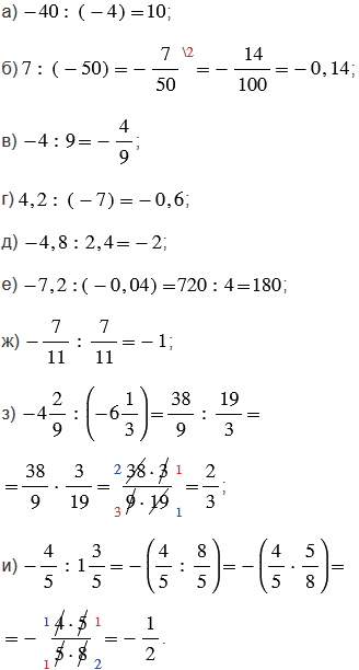 2) чтобы найти частное двух чисел с разными знаками, надо разделить модуль делимого на модуль делителя и поставить перед полученным числом знак "-".