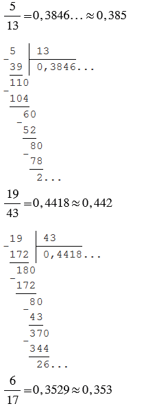 Представьте дроби в виде приближенного значения десятичной дроби до тысячных.