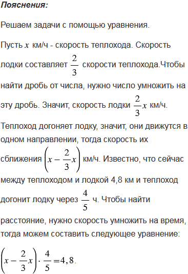 1) Сейчас между теплоходом и лодкой 4,8 км. Скорость лодки составляет