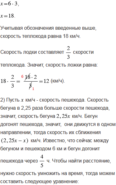 скорости теплохода. Найдите скорости лодки и теплохода, если известно, что теплоход догонит лодку через