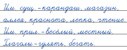 Имена существительные - карандаш, пенал, магазин, доска, аллея.