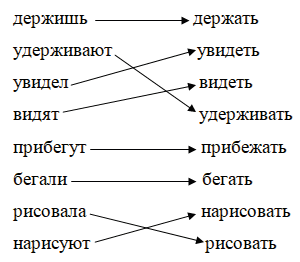 Соедините стрелочкой каждый глагол с его начальной формой.
