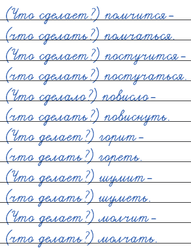 Запишите глаголы из загадок по образцу. Поставьте вопрос к каждому глаголу, определите его начальную форму.