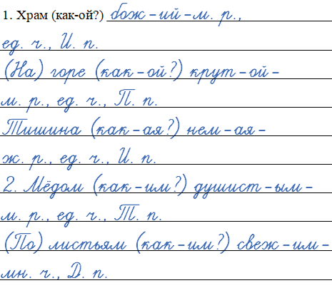 Прочитайте тексты. Запишите словосочетания из имён существительных и имён прилагательных с вопросами. Укажите число, падеж и, если можно, род имён прилагательных.
