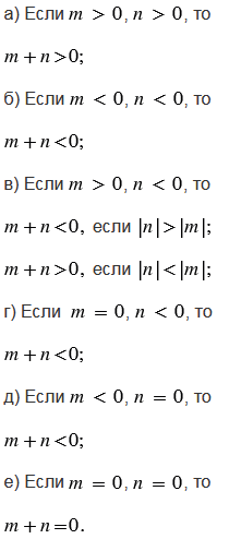 Если к числу прибавить ноль, то получим это же число (значит, если второе слагаемое положительное, то и сумма положительная, если второе слагаемое отрицательное, то и сумма отрицательная).