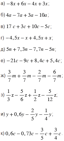Найдите сумму подобных слагаемых: