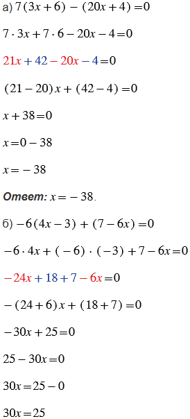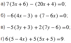 Сначала каждое из уравнений упрощаем, для этого сначала раскрываем скобки. Чтобы раскрыть скобки, нужно множитель, стоящий за скобками, умножить на каждое слагаемое, стоящее в скобках (учитываем то, что вычитание можно заменить сложением с противоположным числом) . При этом помним: