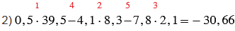 2) 0,5 • 39,5 - 4,1 • 8,3 - 7,8 • 2,1.