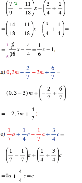 У нас в выражениях подобные слагаемые выделены одинаковым цветом, но можно подобные слагаемые подчеркивать одинаковым количеством черточек.