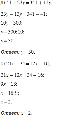 Для решений данных уравнений сначала избавимся от всех дробных коэффициентов, для этого умножим обе части уравнения на наименьший общий знаменатель (в пунктах с десятичными дробями, умножаем на круглое число, у которого число нулей соответствует наибольшему числу знаков после запятой). Затем соберем в левой части уравнения все слагаемые, содержащие неизвестное, а в правой - не содержащие неизвестное, затем приведем подобные слагаемые, то есть сложим их коэффициенты и полученный результат умножим на общую буквенную часть.