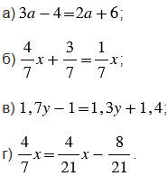 В уравнении а) применяем первое свойство, а в уравнениях б), в) и г) сначала применяем второе свойство, а затем первое свойство.