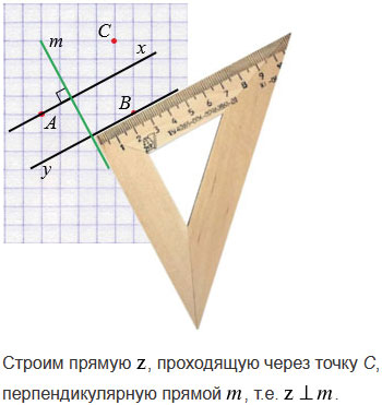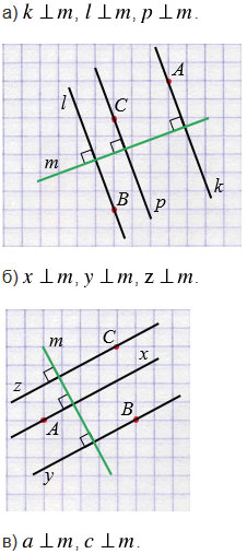 Проведите через точки А, В и С прямые, перпендикулярные прямой