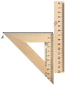 Далее построим прямую ВС параллельную АD. Чтобы провести прямую ВС параллельную отрезку АD, прикладываем чертежный треугольник к отрезку АD одной из его сторон образующих прямой угол, а вдоль другой стороны чертежного треугольника, образующей прямой угол, прикладываем линейку.
