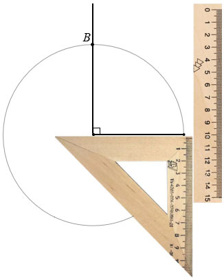 Далее, не меняя положения линейки, двигаем вдоль нее чертежный треугольник до точки В и проводим через точку В прямую вдоль стороны чертежного треугольника.