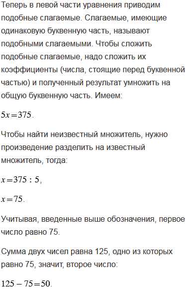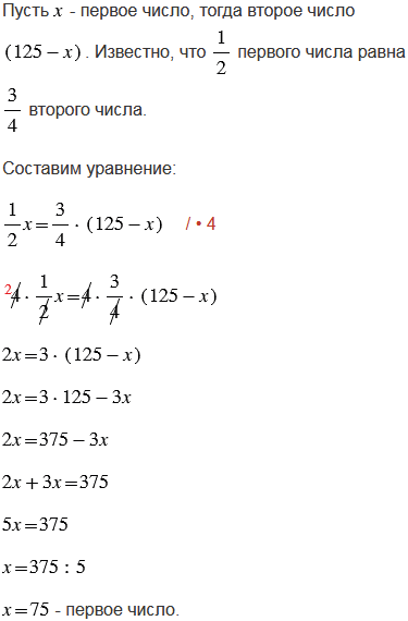 Найдите два числа, если их сумма равна 125 и одного числа равна другого.