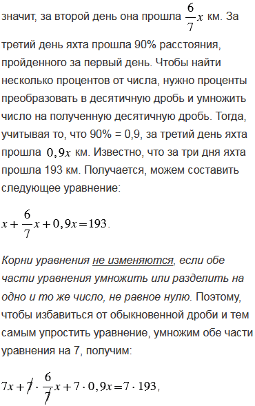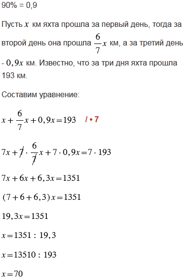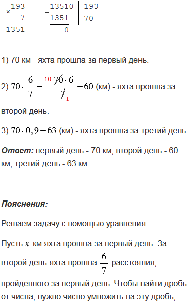 За три дня яхта прошла 193 км. Найдите, сколько километров проходила яхта каждый день, если во второй день она прошла